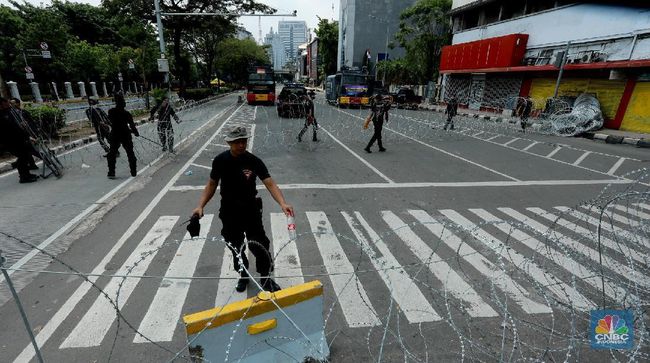 Demo di Jakarta Hari ini, Polisi Tutup Akses ke Istana Jokowi : Tak Lagi Rusuh, Kawasan Thamrin Kembali Ramai.